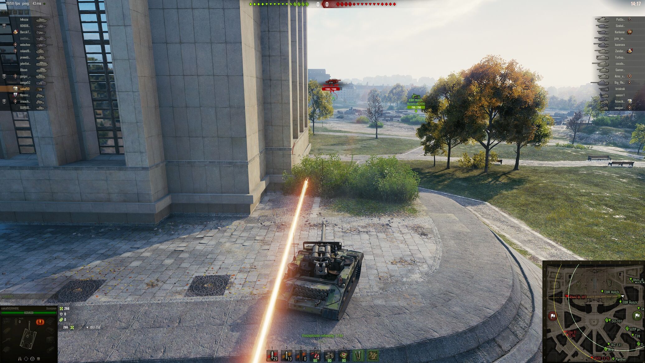 Ebr a domb mögött lapult még, 1375 lent kószált, ők nem láthattak. Másik ebr nincs spoton, de jobb oldalt el kellett volna valahogy jönnie, hogy meglásson a lövésnél, de azt valószínűleg felspotolta volna a saját ebr. Bár ezt nem tudjuk meg mert ha fel is spotoltak a lövésnél valahogy túl korán haltál a lámpához. -