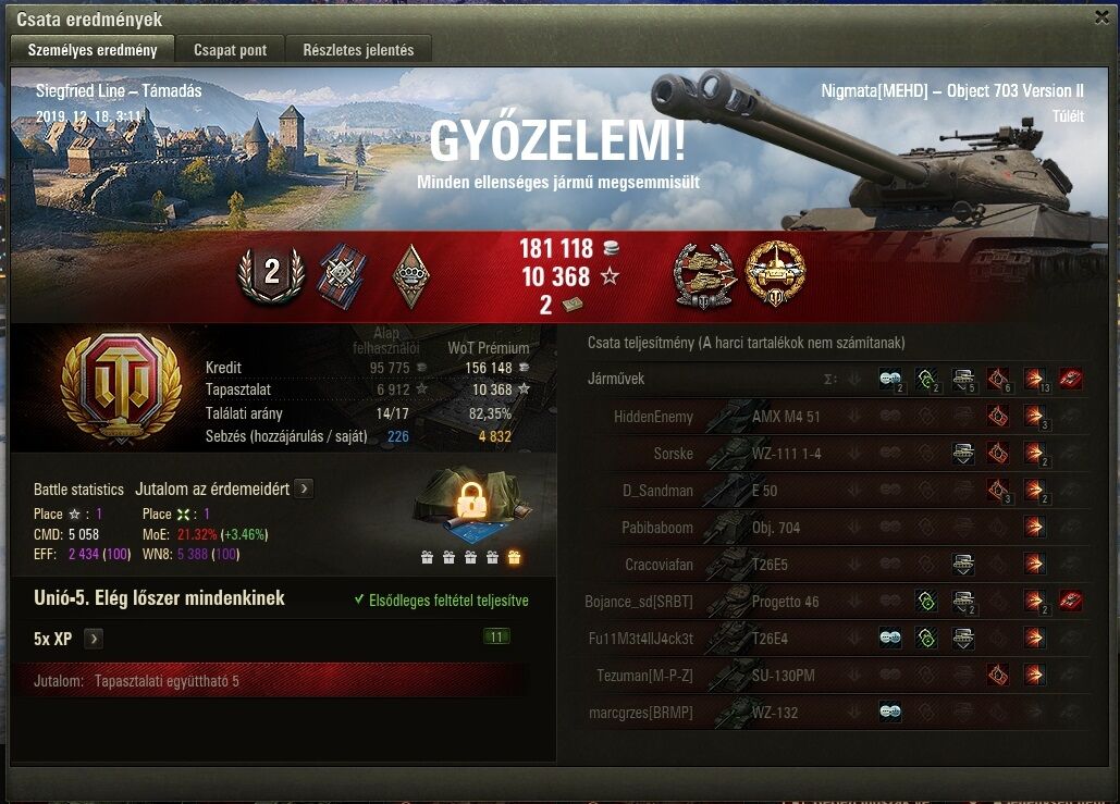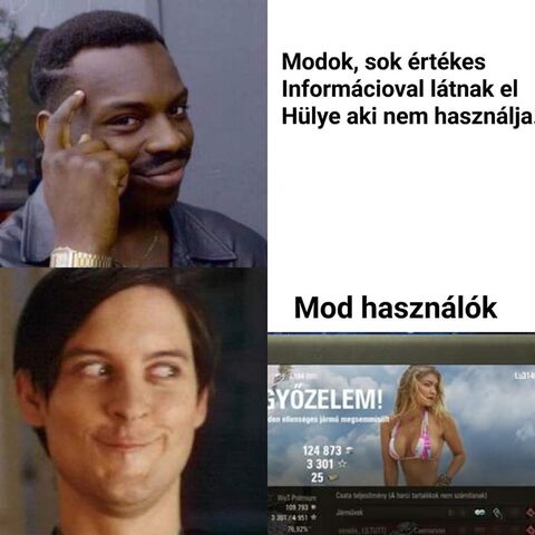 Talán, néha , olykor-olykor , egyet-egyet. Egyébként is ... itt az egyéni teljesítményről volt szó . Nézek megosztott videókat és köztük Szakács Tibiét is . Sokan vannak akik nem kedvelik , de én azok közé tartozok , akik kedvelik . Jól játszik , és jól reagálja le a csata eseményeit . Viszont gyanúsan jobb a "szórásképe" , mint a sajátom . Én hiába kapok jó leosztást - mert ugye a kimagasló eredményekhez elengedhetetlen - , valahogy egy bizonyos sebzési érték ( 2500-3000 ) elérését követően , néhány kivételtől eltekintve , olyan mellélövéseket produkál a löveg , hogy öröm nézni . A wéennyóc növekedésével emelkedik a löveg pontossága és a "szóráskép" is a jobbik arcát mutatja ..... én így gondolom . Ez a magánvéleményem . -
