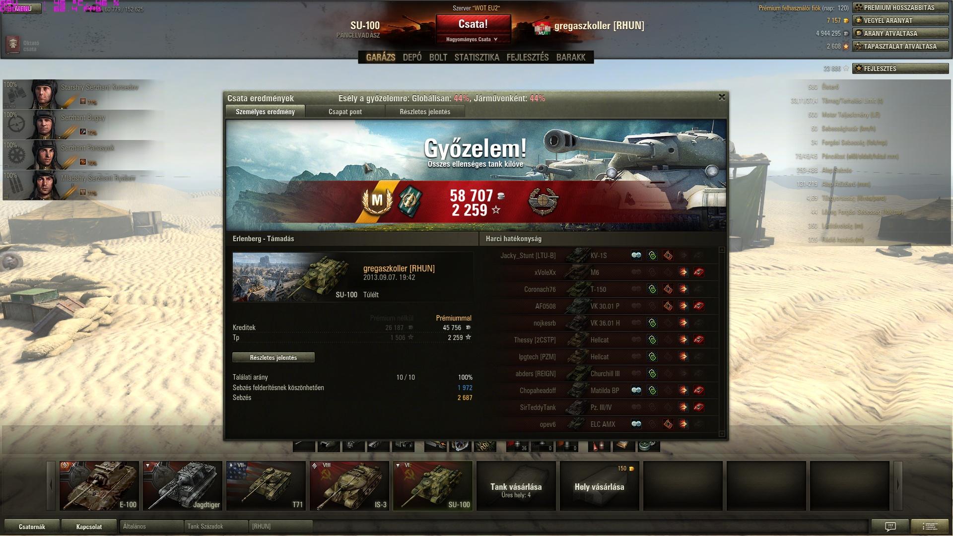 Epikus kör E100-al. A végén beflankelt két fullos E75. Érdemes megnézni, hogy milyen jól lehet beforgatni a testet, aminek az eredménye végül a csata megfordítása lett: