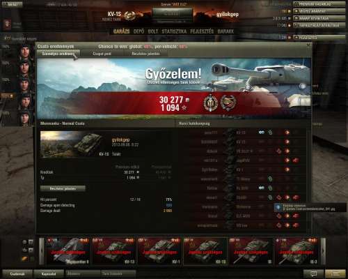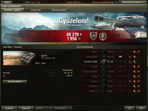 Általában ha 10 partiból se jön össze vele a győzelem, akkor fel is adom arra a napra.Kivétel az At-8 azzal általában hozom a stabil 60% körüli eredmény, még ha nyomik is a csapattársaim.