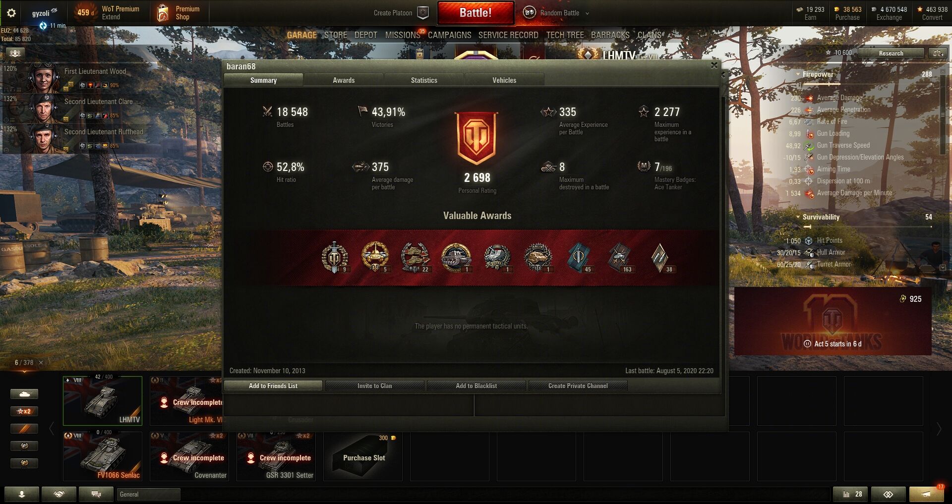 Továbbá kaptam 1-et valamire és napi küldetésekből ahol 3 db nyerhető már 6-ot behúztam a lehetséges 21-ből valamint 1.750.000 kreditért vettem 50 db-ot.Tier / Tank a garázsba / Általában használtak: