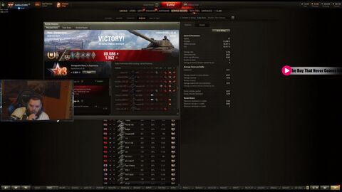 16 órás adása volt ez is baromi ritka, egészen a szerver restartig vagyis reggel 7-ig játszott. 7 előtt 91%-on volt már a jelnél, bement egy csatába, 7 ezer sebzést csinált benne olyan 92% körül kellett volna lennie ezzel az eredménnyel erre mikor kijött a csatából ahelyett hogy 92%-ra emelkedett volna, 88%-ra esett vissza a jel. Frissültek az elvárt értékek és ahogy számítani lehetett rá Daki és Ő elég sokat emeltek rajta.Skill nem szokott ilyen versengésekbe belemenni, de most ugye a wg csinált egy ilyen versenyt ahol minél több kiválósági jelet kell gyűjteni, neki meg ez a védjegye a tankok markolása, erre épül az egész wot-os karrierje. Szóval neki ez most presztizs kérdés volt és kötelező volt komolyan vennie. Daki viszont beleköpött a levesébe, kijött a különbség, hogy Daki azért erősebb játékos nála, legalábbis ezzel a tankkal kombit nézve biztosan.