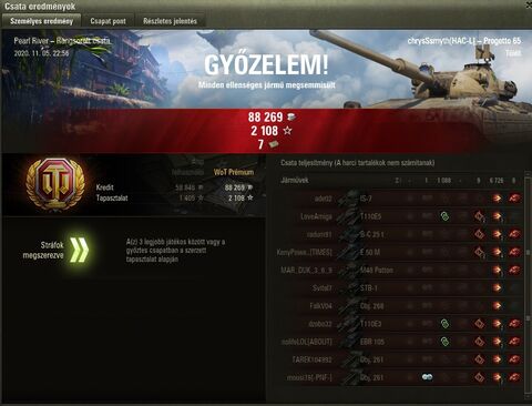 Lenyomtam a 20 kör selejtezőt. Mondom teszek egy próbát... hát mondanom sem kell, hogy este 150-300 as latencyvel élvezet volt játszani. Elővettem a Progettot a TVP-t T100LT-t. 5 meccsből 5-ös szint a harmadik divízióba. 300%/75% egyéni... kiváncsi vagyok, hogy ma mit fog hozni a szerencse.