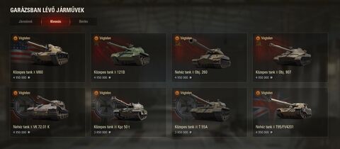 Ment a chieftain, 907, vk72, kpz50t és a t55a a zaciba. M60, 260 és 121b már korábban be lett adva.
