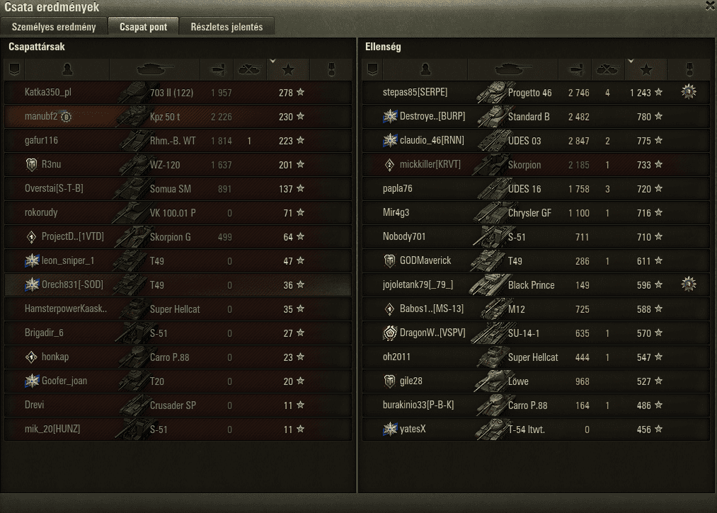 kchryss: Nekem annyi jött le, hogy meta hulldown meg táras medekkel meg gyors nehezekkel, aka hulldown medekkel kell rankedezni, mert lassú tankokkal, pláne TD-vel kereken 0 szart sem érsz. Ja meg OP lightokkal mint a kocsi meg T100 LT