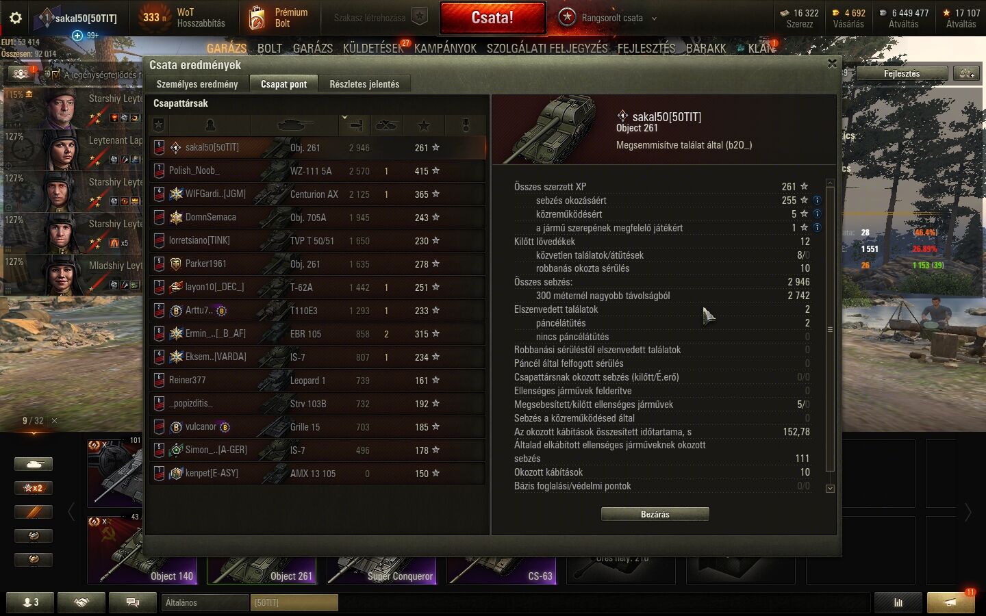 Ti a jelenlegi rendszert a teljesítmény jutalmazóbb irányba(vagyis a 2-s véglet) felé tolnátok el. Szerintem ha a jelenlegi rendszert ebbe az irányba tolnánk el az már végzetes lenne a csapatjáték szempontjából, így is a határon van a dolog, túl sokan foglalkoznak csak azzal hogy a csapaton belül jó helyezést érjenek el és kevesen gondolkodnak csapat szintű győzelemben. Így hogy a győztes csapatból az utolsó 5 nem kap stráfot is kétszer meggondolom hogy beáldozzam-e magam és meginduljak-e, ha még bukhatnék is stráfot győztesként akkor aztán tutibiztos hogy eszem ágában sem lenne megindulni mert simán benne van a pakliban hogy a többiek nem segítenek és potyára halok meg.Egyébként ha mented az összes replay-t akkor replay elemzővel megnézhetnéd a csatáidat és kiszámolhatnád hogy hogyan állnál az általad javasolt rendszerrel. Megnéztem és 49% a győzelmi arányod ami azért nem számít olyan rossznak (én 48%-kal simán végigmentem az első epizódnál komolyabb megtorpanás nélkül). Ha ilyen wr mellett nem tudsz a 2-es divízióba jutni akkor ott csak az lehet hogy a győztes csatáidban egy csomószor vagy benne az utolsó 5-ben amit te mint írtad stráflevonással büntetnél. Szerintem simán előfordulhat hogy rosszabbul állnál az általad javasolt stráfos rendszerben mint a mostaniban.
