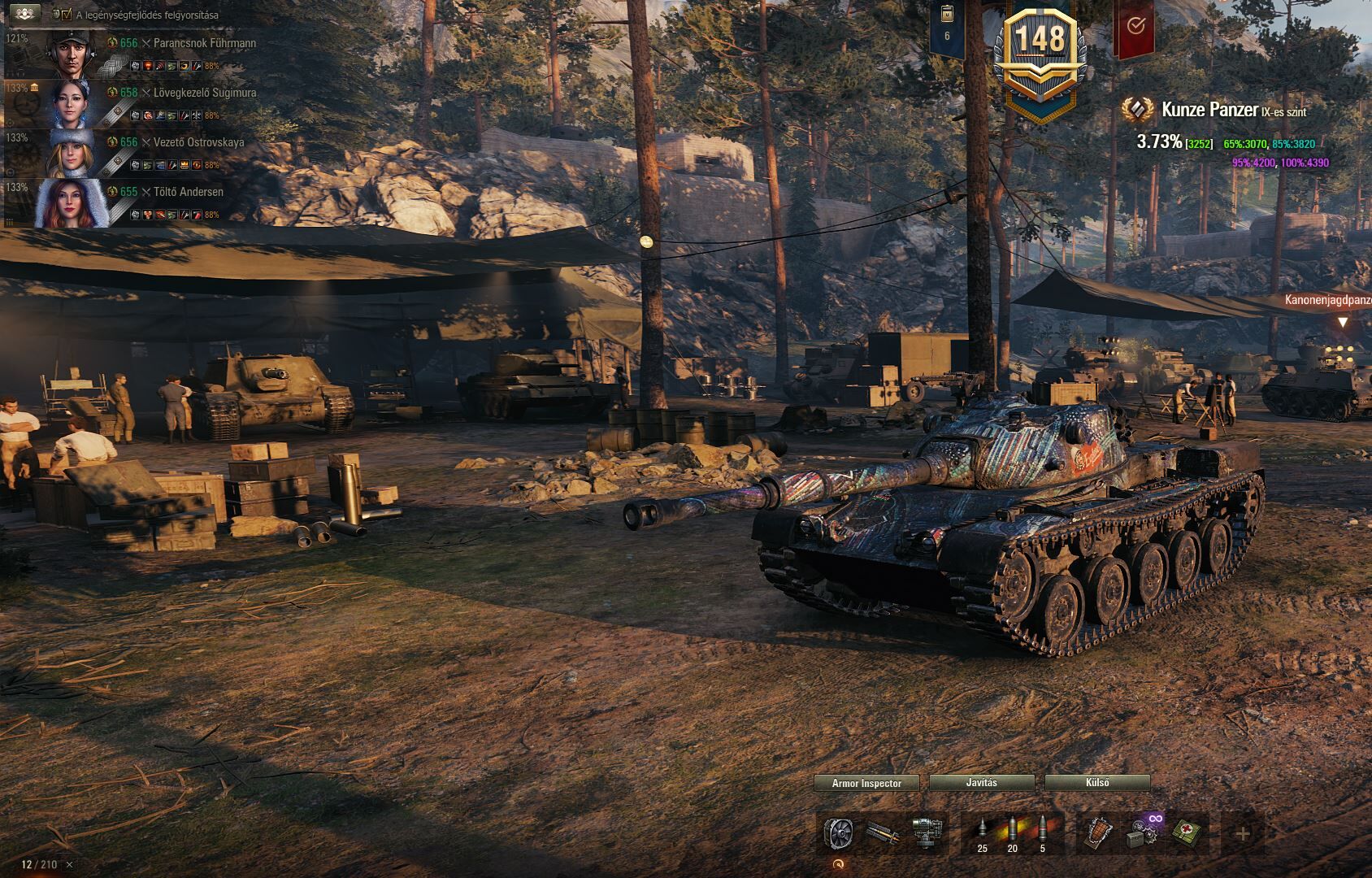 Jano én is kivettem a KunzePanzert. Szerintem elég jó dög. Bár még gyakorolni kell vele a hulldown-t mivel eléggé papír de ha ostrom módban nyomom és épp, hogy kilátszik valami akkor azért tud meglepetést okozni a pattintásokkal. Szerintem jó dög.