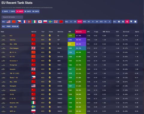 Első 3 nem számít. De utána egy Charlemagne van, persze ez a tank nincs meg a "kezdőknek" mert nem jutottak el odáig plusz nem ér annyit. De az a tank nem OP, sőt jónak is csak nehezen mondanám, de mivel jó játékosoknak van meg itt nagy a WR. A többi régebbi "op" tank meg alig van lemaradva. Így ebből levonni, hogy az FUUUU de mocsok OP nem éppen tökéletes következtetés. (főleg, hogy most sok op játékos markolta és játszott vele). Nézzük meg ezt a listát mondjuk egy hónap múlva.Az igazi OP tankok kb húgyosra veri a többit, de ide is kell a játékos. Ha azok meglennének a gyengébbeknek is, hidd el nem tűnne ki a ligából ennyire. Szoktam nézni vásárolt Early és Csifi játékosok statját és nem sokkal jobbak mint a többi tankjuk.