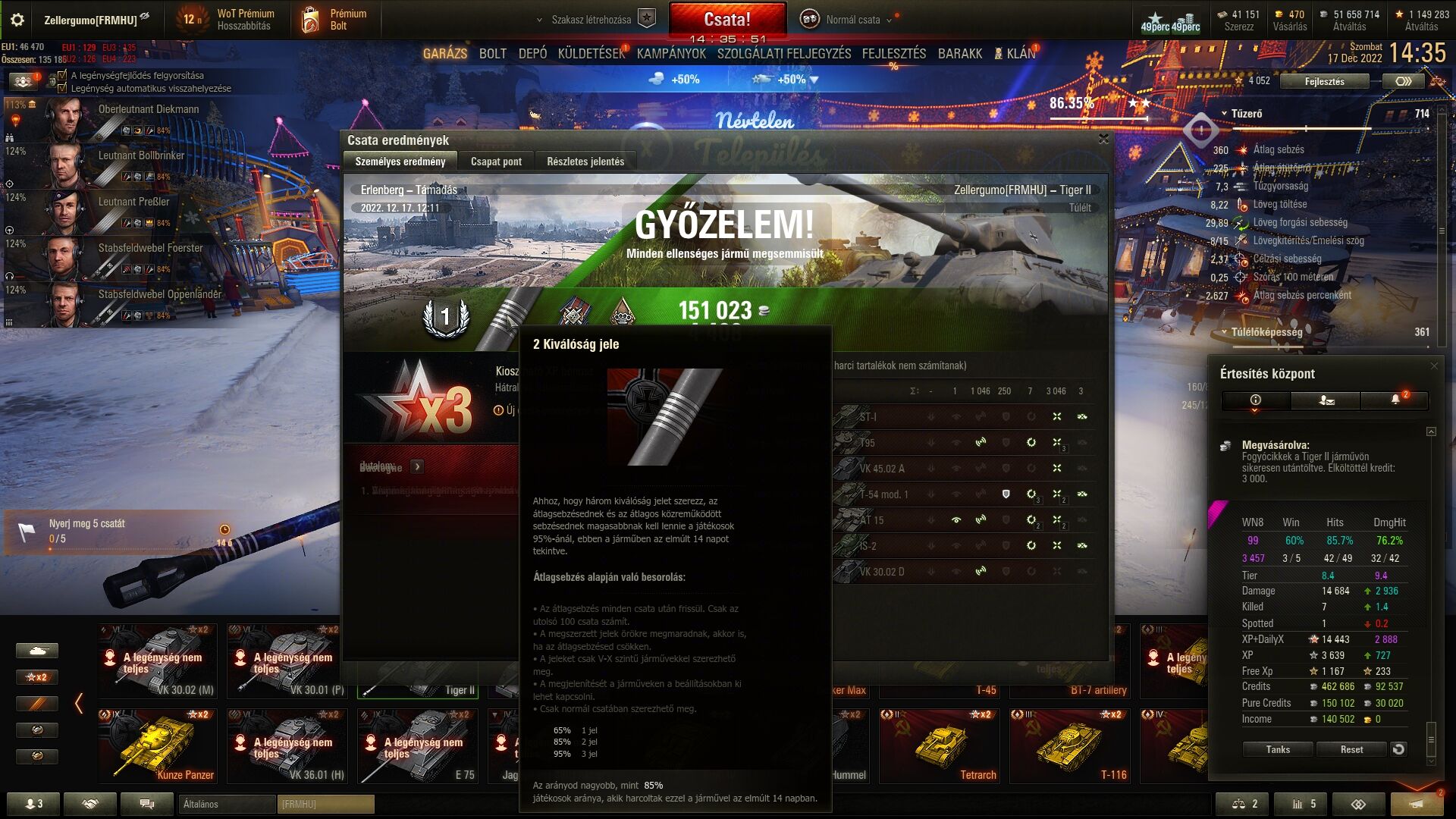 a játékos állományrol ne is beszéljunk, a mostani metában egy ágat végig kb. 1 hét kihuzni, rengeteg az alacsony csataszámu játékos minden osztályban, lovésuk sincs a játékrol, de a tizes-kilences tankállomány már ott figyel a garázsban.