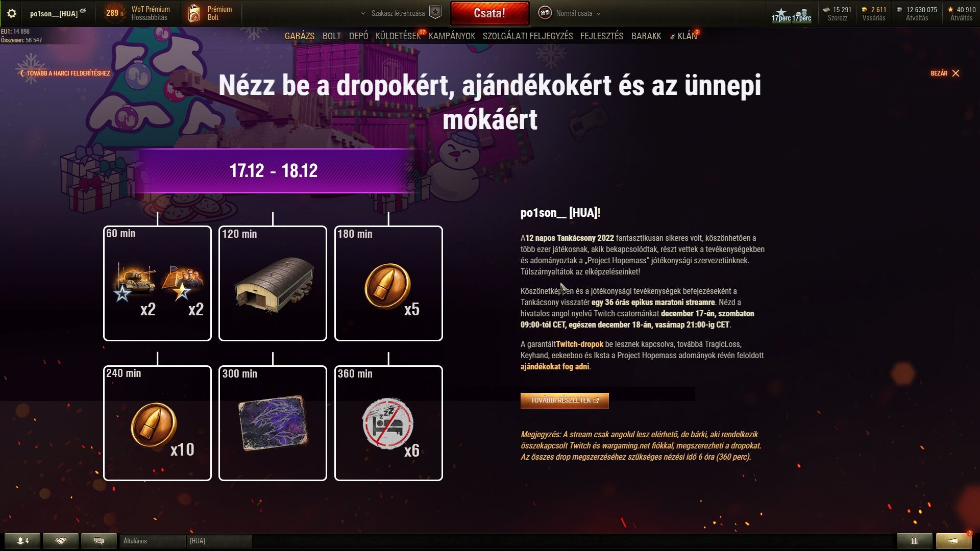 ) twitch dropok? amiből potyoghat tier8 prém is. -