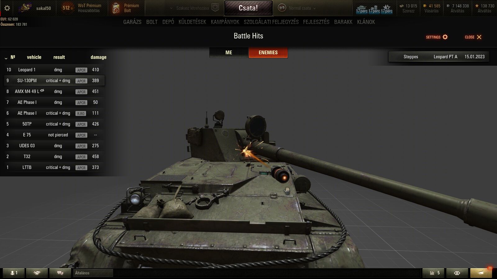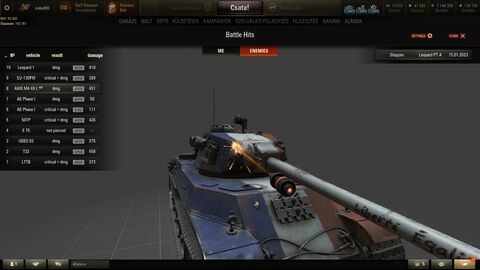 jelen esetben a leopard PT goldja 319mm alfa, a sebzése 440hp alfa, a su páncélja meg a becsapodás helyén 15mm körüli.