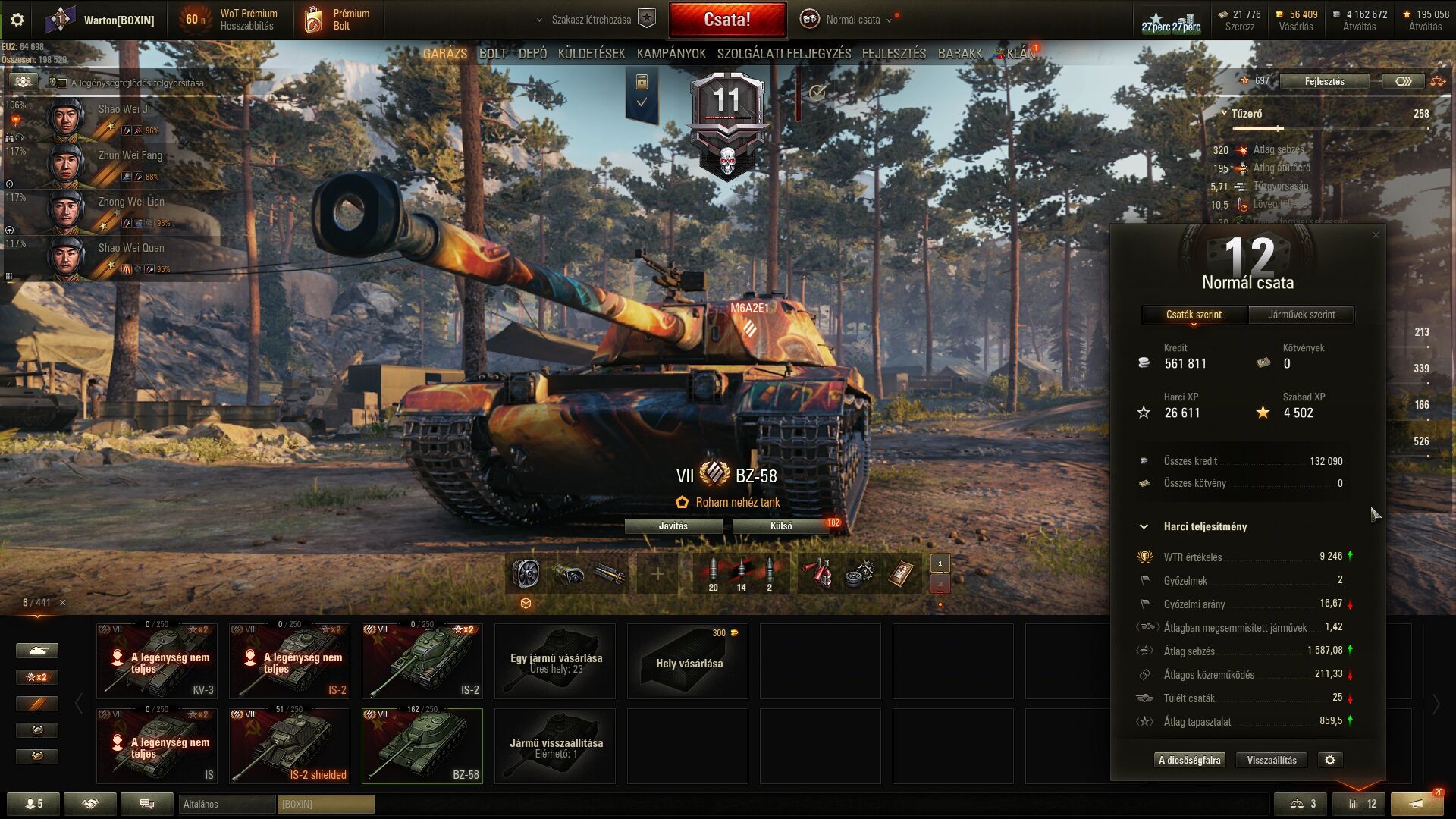 a kreditet meg szinte f.ssa a bz176 - boosterek mellett 222k bruttó 175k nettót ért a 4k sebzéses kör - nem olcsó a prémium lőszere, de bőven visszajön - egyébként nekem az alap lőszere is tetszik, AP és annyi az átütétes, mint a skoda t56-nak, amivel pedig elvagyok. Egy tier7 tank fele hp-ját elkérem egy lövéssel azzal is. Persze boosterek mellett az arany lőszer még bevétel szempontjából is jobban megérheti.
