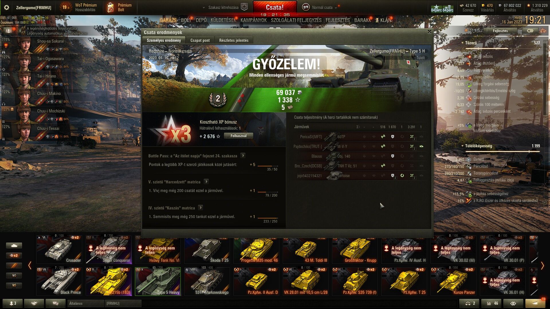 Már én éreztem rosszul szinte magam, mert a tier7 nehezek abszolúte semmit nem tudnak vele kezdeni, a tier8-ak se igazán. Olyan kellemetlen érzés ez nekem, de elhiszem, hogy van sok beteg lelkű, akinek ez örömöt okoz, hogy egy szerencsétlen tehetetlent szanaszét lő (kb az artysták lelkülete ez, de annál is szadistább, mert ott van az ember arcában a bz). Egy obj730-ii izzasztott meg kicsit, de ő megkapta a 824-et és egylövéses lett utána, kiszedték a csapattársak, amikor dühből rám jött.