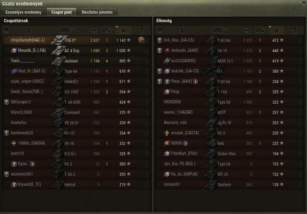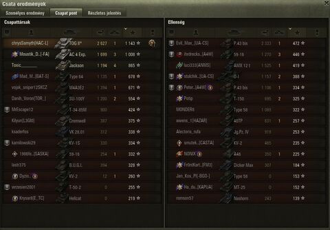 Akartam posztolni egyet, hogy kik ezek a jatekosok heavy-vel a sajat bazison, erre lehozzak a vegjatekban. 10-es AMX 9k damazst tolt. De akkor mar csak posztolok!