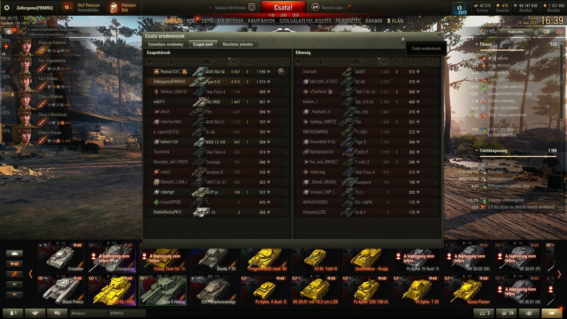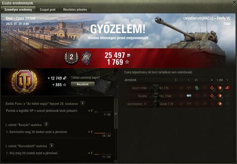 Mai első csatám, 40k+ fölött járok csataszámban, de szerintem ilyenre még nem volt példa nálam. Érdekesség, hogy mindhárom napi küldim meglett vele egyszerre. Sajnos lejárt az idő 4 tank maradt az ellenfélnél.
