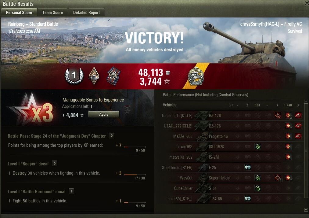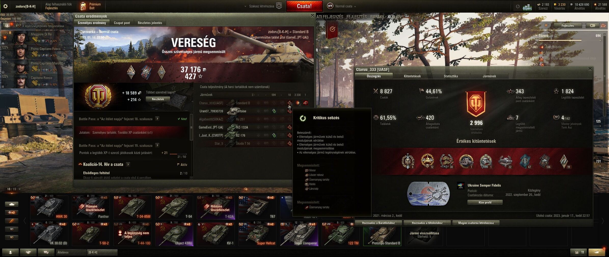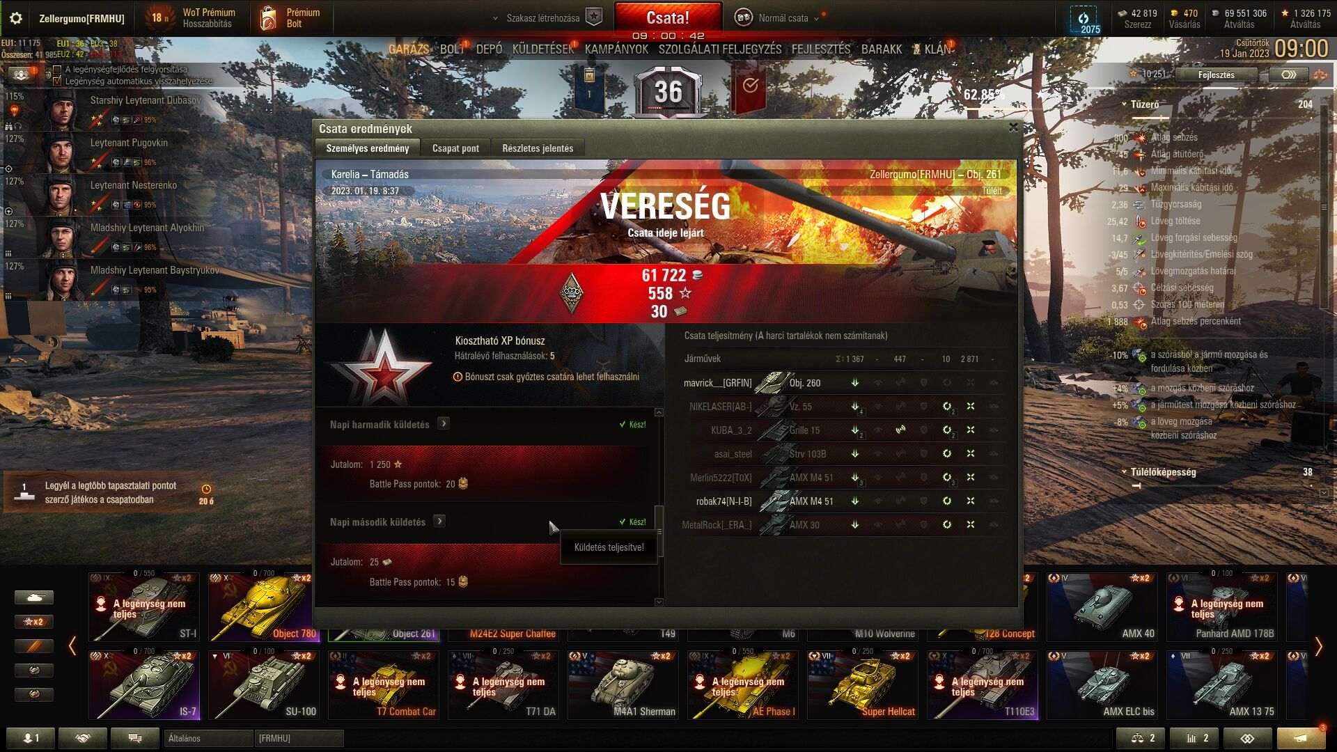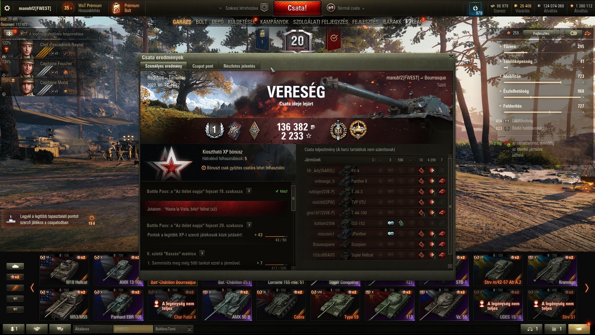 Annyi könnyebség volt, hogy mivel a bz166 nehéz tank és közelről lőttem vele, ezért győztes csatában is általában sikerült a top10-ben lennem, de még így is egy borzalom az tank. Ha lett volna töredékem vagy szabad xp-m, akkor azonnal átugrottam volna.