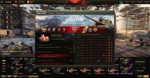ma mentem eddig 28 csatát, egyik sem volt szorosabb mint 5:15 vagy 15: 5 és nyolcassal csak párszor voltam magasabb tierben, tizesben egyáltalán nem. de hogy honnan szalajtották ezt a sok retadot nem tudom. a tier hatosok ugy szedik szét a nyolcas tankokat, hogy öröm nézni. én meg hiába lövök, mellé, alá, fölé vagy pattan a böven 200mm feletti átütéssel bármiről.