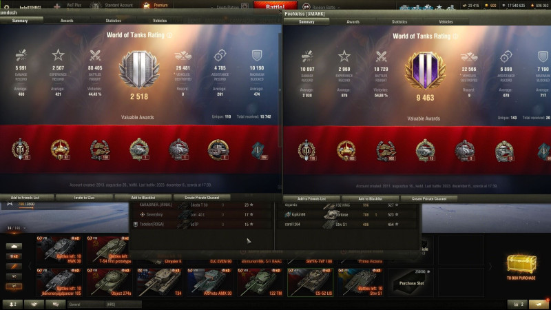 Ez végül is a WG-t dícséri valahol, hogy nem annyira könnyű észrevenni a botokat, vagy a játékosállományt is jellemzi. Itt most azért vettem észre, mert a 2 tank megállt ott és össze-vissza tekerték a tornyukat. Még nem tökéletes a script, de most nagyon feltűnő volt. Azért is vártam sokat ott, mozdulatlanul, hogy mi lesz? Kimentem wc-re, vissza és ez a 2 még mindig ott áll és tekergeti a tornyát.Maga az acc elég régi, de nagyon ritkán veszem elő. Még a toborzó program amikor indult, kifarmoltam magamnak rajta az sta2-t és van rajta pár tank, ami nincs meg a fő accon.