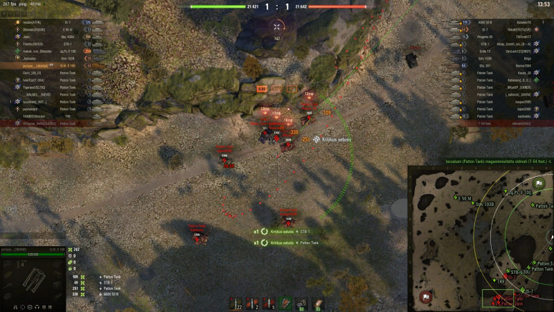Ütközéssel és egy lövéssel 1086-ot sebeztem bele és megsebesült a parancsnok,vezető,töltő. -
