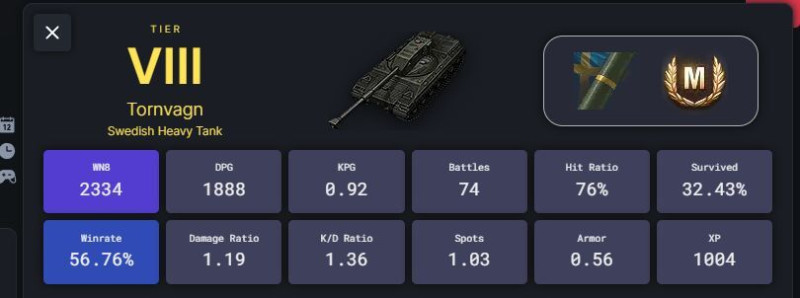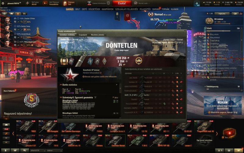 Én ezt tudtam vele hozni, ami nálam egy jobb tankok között van, de bőven messze a 2k+-tól amit t832. BZ, Skoda, somua..stb azért tudok tartani.
