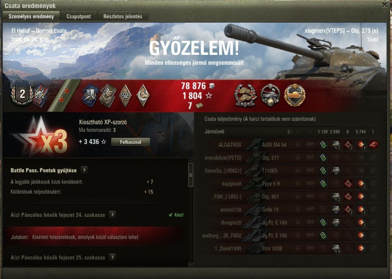 Így van, teljesen mindegy a szerver. Ugyanúgy 35%-os winraten tartja a meccsmotor az Object 430-am akármelyik szerveren játszok vele. Mondhatnám, hogy sz*r vagyok vele, de tegnap is volt egymás után 3 olyan csata, ahol 3000 felett sebeztem + assziszt, utánam a csapatból a második legjobb 800-at. A többiek meg egy nagy nullák voltak.