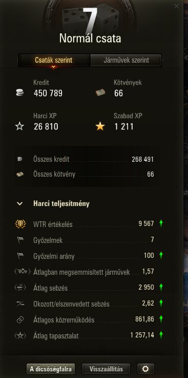 a roham olyan furcsa nekem, mindegy hol vagyok, melyik szinten, vannak nyerő szériák és van amikor bármit el lehet veszíteni, ha fejemen pörögnék akkor is. Ha extrapolálok, akkor ezüst rangig nekem kb 6-8m kreditem bánná. Azért gondolom, hogy el tudnék oda jutni, mert korábban már többször sikerült, de sok időbe és csatába telt.