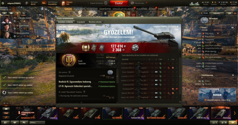 Egyébként arra leszek kíváncsi, hogy a WG mikor jön rá, hogy roham módban sokkal egyszerűbb a napi küldetéseket megcsinálni? 7-ből egyszerúbb top x lenni sebzésben, xp-ben, de a közelharc miatt több sebzés is jön. Csodálom, hogy még nem tűnt fel nekik, nem szoktak könnyíteni általában.A random az más kicsit, valahogy, nehéz ezt megfogalmazni, de "bátrabbak" a játékosok az EU3-n. úgy értem, hogy akkor is ha durva túlerőben vannak, nem azt csinálják, mint az EU1/EU2-n, hogy full hp tankok félnek bevenni egy lövést, ott vakargatják t.küket a fedezék mögött és várják a társaikat, hogy majd egyszerre essenek rám. EU3-n meg kijön a csóka és megpróbál lenyomni, ami van hogy sikerül neki, van hogy nem, de mindenesetre harcoltunk egy jót.