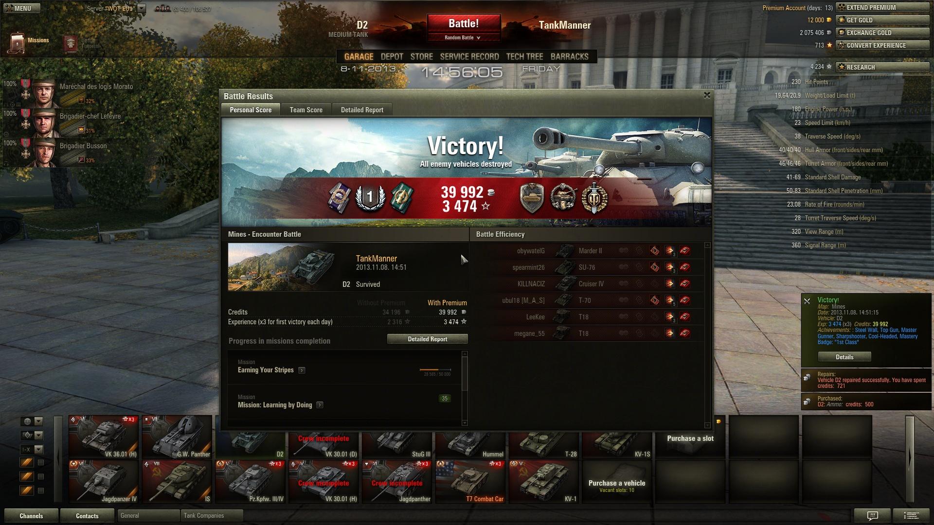 Csak annyit tudok mondani, hogy végy nagy levegőt, és bírd ki T5-ig. Onnantól ha fullos a tankod már normálisan lehet játszani. Sajnos ilyen ez a T3-4, legalább T3-ban megcsinálhatnák a +/- 1 tier-t, mint a kettes gépeknél. Néhány T4-es gép (Matilda, Valentine, T-28, SU-85B) még a 6-os heavy-ket is lazán sebzi, bár ez nem jelenti azt, hogy a IV-esek nagy részével nincs nehéz dolga az embernek.