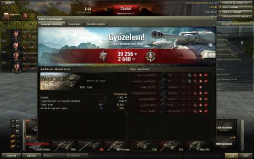 Úristen! Milyen csaták vannak. Tier 8-9-10-ben fél csapat meg sem mozdul álnak bénán a kezdő mezőn semmi fedezék vagy ilyesmi. Tier 6-ban másfél perc (rekord)és bukta. Tegnapi nap tényleg jó volt estig vagy 25 csatát mentem szinte minden csata nyerés volt, meg is lett hamar a 250K kredit, a végén azért volt egy negatív széria de vígan hagytam ott mert amit akartam megszereztem.. Na most viszont játszhatatlan dömping van. Megyek a T34-el legalább a kredit gyüljön.