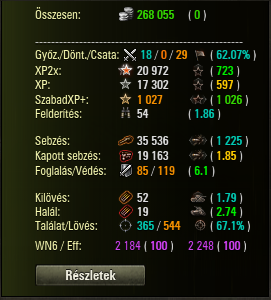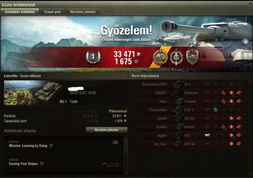 Szerzett tapasztalat 6 096 (x3 minden nap az első csatáért) Szerzett kredit: 59 130