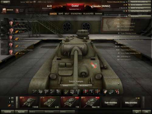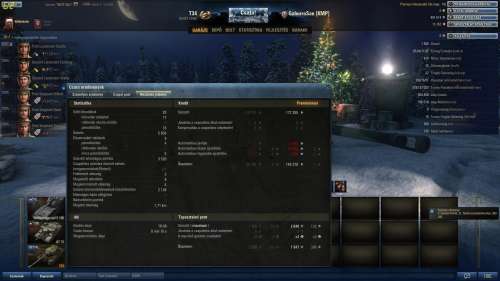 más; a t54E1 meglett tegnap, nem sajnáltam rá, egyből free xp-bol nagy ágyú, szinte fullos (lanctalp nincs még ), legénység közel 4 skillesek, célzás gyorsító, függőleges stabilizator, erősített lanctalp (így lehet mindent rapakolni ), hát brutál -metál, a t69-tol egyértelműen jobb, úgy értem kivegez ez bármit szinte