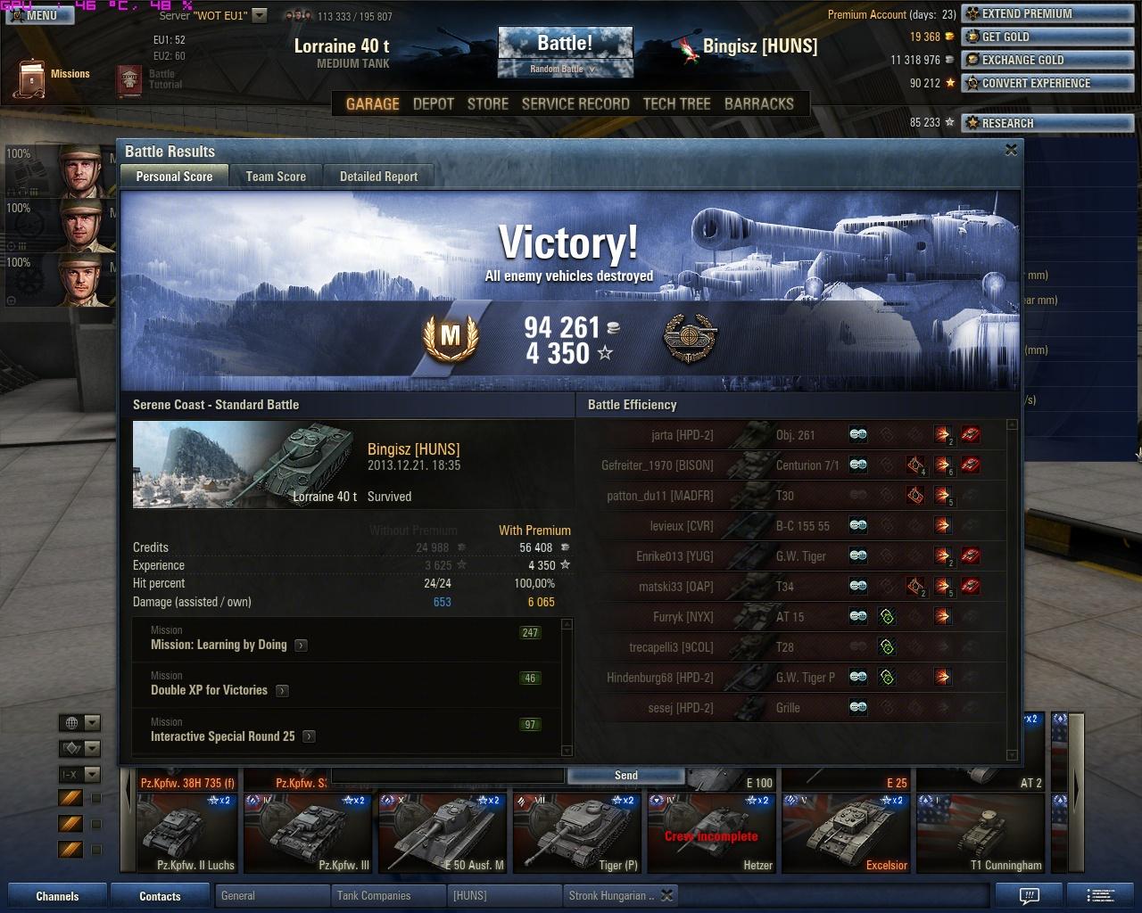 15-20e kredit marad tisztán egy átlagos csatában, de ha kilőnek és/vagy gyengébben ment, akkor 8-15e mínusz a prémlőszer ára. Ha nem muszáj, akkor inkább csak kivégzésekre kell használni az aranyat, ha 1-3 lövés kell egy adott tanknak, max 6 másodperc alatt vége is és 170 pen azért elég jó, sokat nem kell helyezni a lövést és ilyenkor ez már hoz bőven annyi bevételt, hogy haszon is lesz.