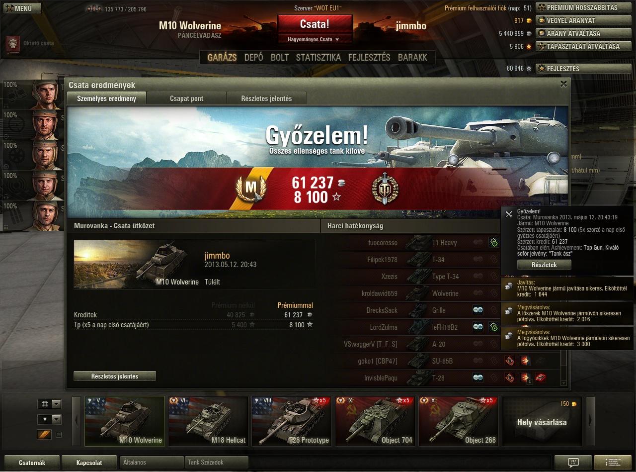 Azon a pályán rosszul gondoltam eddig, hogy lent a K5-höz mindenképp kell mennie heavyknek, mert általában ott szokott kialakulni a nagy tankok ütközete? Csak mert akkor, hogy lehet az, hogy azon a T9, talán 10-es csatán nem jött oda egyetlen egy TOP tankunk sem!? T8-asokkal mentünk oda abból is talán 3-an, hogy feltartsuk az ellenfelet - pl. Obj.704!