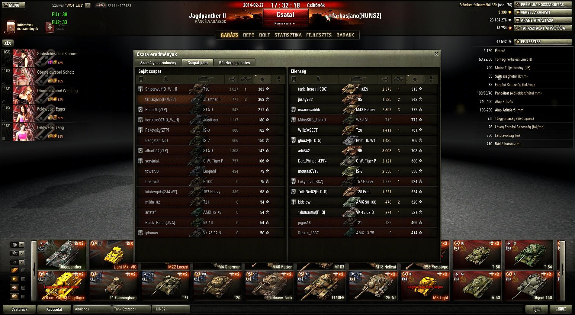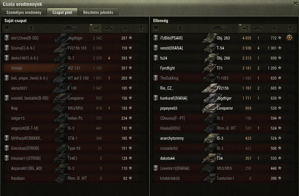 nemrég volt olyanunk, én voltam a legerősebb a KV3-mal meg egy IS, azon kívül nálunk volt még 7db T-43
