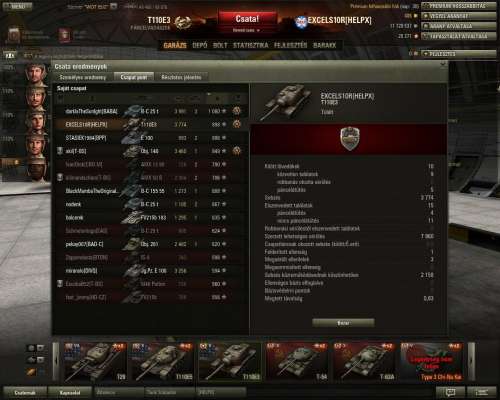 Ma tettem még egy próbát és megcsináltam ezt a team battle 25 killt, egy egész jó csapatot sikerült összehoznom, kb. 30 csatából 25-t nyertünk. Így szépen mindenkinek meglett a prém, ráadásul nem is tomatok ellen nyertünk (volt néhány goldspammer 3000wn8-as alakulat).