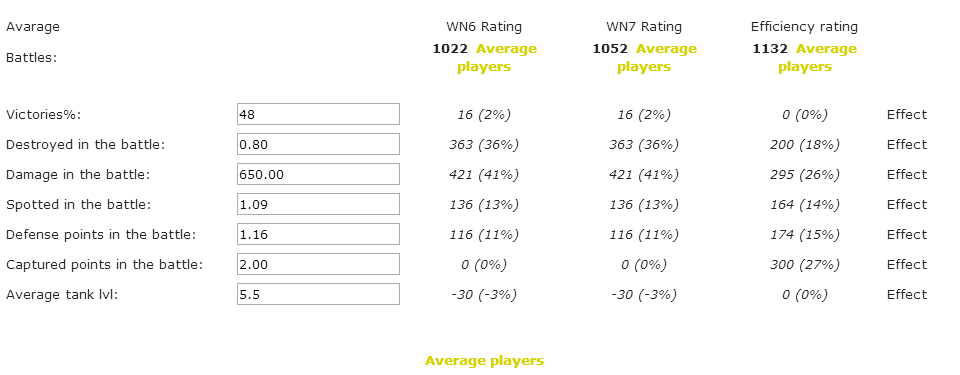 Nem annyira istenített, de elég jó támpontot ad arról, mire számíthat az ember (tankonként lebontva lenne az igazi). A noobmeter.com-on meg lehet nézni sajátot, meg bárkiét név alapján, egyesével, az XVM meg kiírja minden játékosnak a csatában, ha megfelelően van beállítva