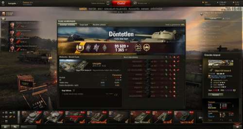 Teljes: 54 718 WN8: 10 416 (100)(#73654) S.Copperpot Igen, ez jó eredménynek számít, de abban bíztam, hogy 1200 körül már megadja. Mintha olyan rémlett volna, hogy a brit tankokkal kicsit könnyebb az ászt behúzni.