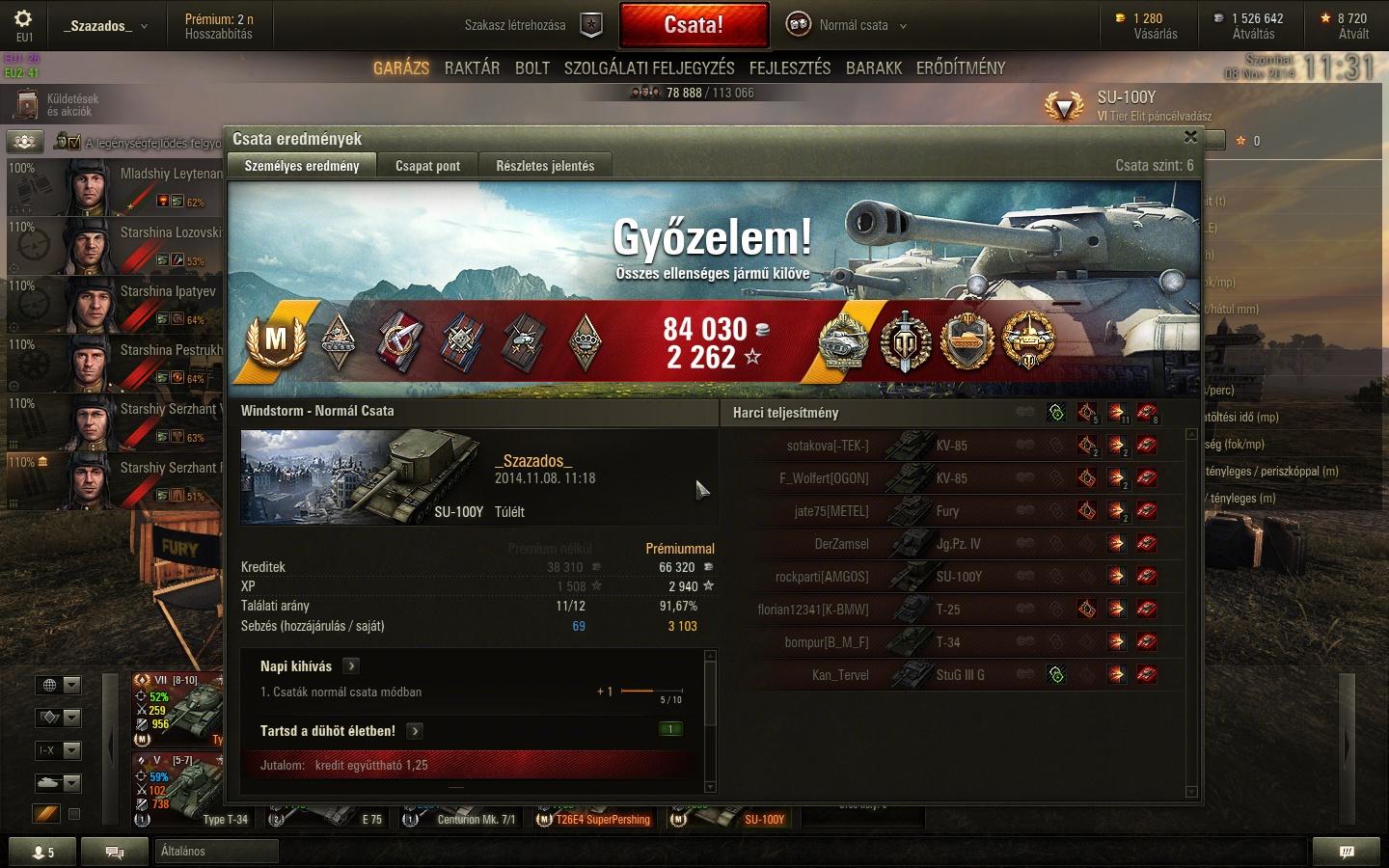 Teljes: -12 766 WN8: 6 190 (100)Ezzel a csatával jelentem, lement nullára a kreditem megint. Sebaj, holnap két nap prémium, meg az 500e-re is fáj fogam nagyon.