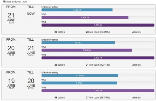 Vizsgák miatt minimális volt amit játszottam mostanában, amikor mentem az is a nagy accban volt. Most beléptem a kicsibe, megvettem az MT-t, begyűjtöttem 3 stock tankra a x3-mat. Csak az zavar hogy 7-kor újra x3 lett, 2 csatát mentem sturer emillel és mindkettő bukó, 7:15 körül (? - 7:10kor még x3 volt) visszaállt x2-re úgyhogy nem tudom még egyszer begyűjteni a nagyobb xp-t.Viszont a garázsom megint azt csinálta hogy kiválasztok egy tankot és mintha nyomva tartanám a bal egérgombot, nem engedi el csak ha rákattintok pl a fejlesztésre. Túl lehet élni de nagyon idegesítő. Frissítettem az Aslaint és vagy ezért vagy simán a játék újraindulástól, de úgy néz ki elmúlt.