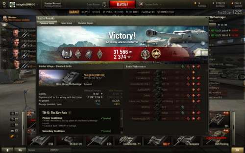 Amúgy egy tök gyenge kör volt, mármint megnyerhettem volna, Erlenberg, egy bázist kellett volna foglalni, a végén nálunk maradt egy afk Covenanter meg én, az ellennél egy Sherman III (egy lövés) meg egy Pz IV H full hp-n. A PZ meg én benn voltunk a cap körben, közben jött a Sherman, akiről oldalról pattantam (vicc), egy lövést még eleresztettem a PZ-be, de seajnos kiszedett. Elbénáztam, mert kicsit elvonta a figyelmem az anyázó kolléga, mondjuk nagy kaliber lett így is 2000+ sebzéssel, de jobb lett volna a szájízem egy egyedül kiharcolt győzelemmel. -