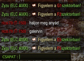 Végre eljutottam arra a szintre, hogy csíter lettem. :-D Honfitársunk nem fért a bőrébe, miután T-150-nel fésztufész kiszedtem, egy gyöngyszem a sok közül: