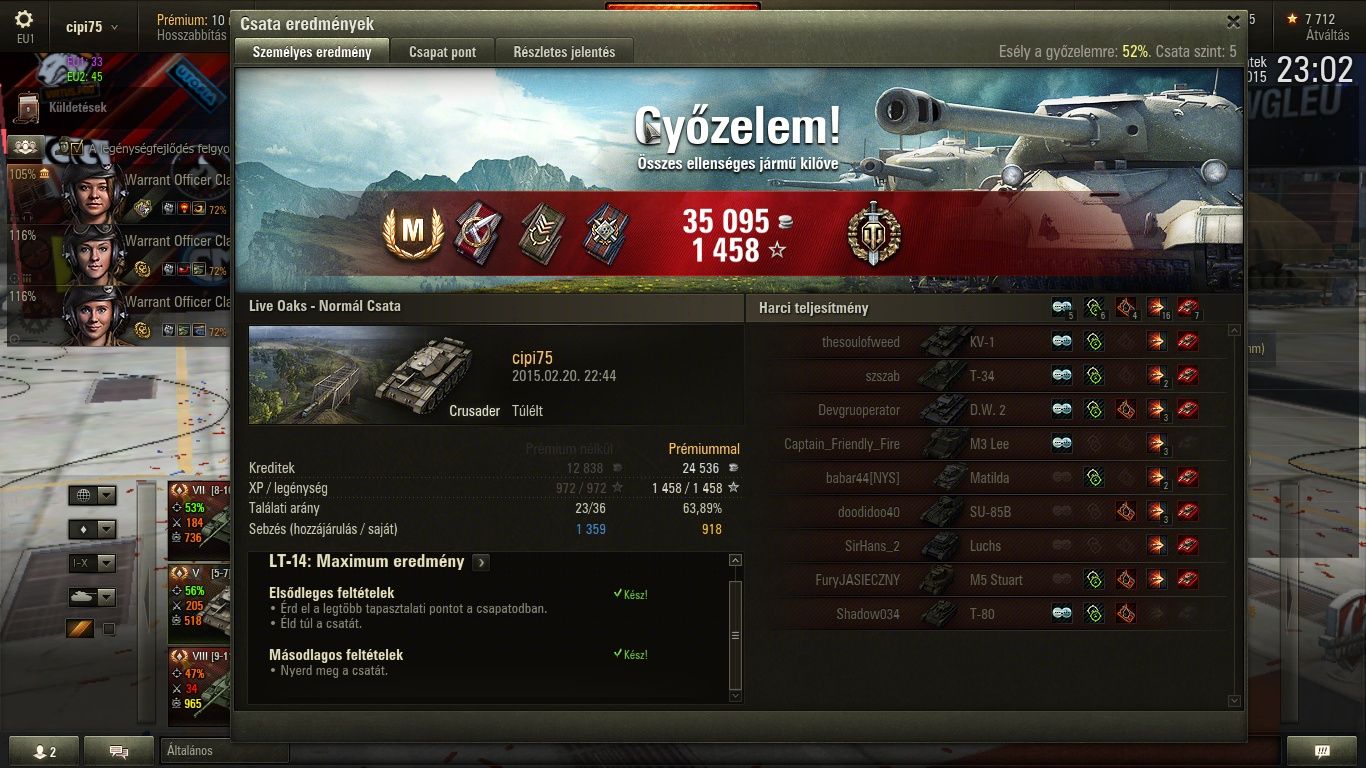 Top tierben vagy 1-2 8-as tankkal még el lehet vele boldogulni, de általában nem egy élmény vele játszani. A szorzókat megcsinálom vele, aztán lassan (még 30k xp) eladhatom végre
