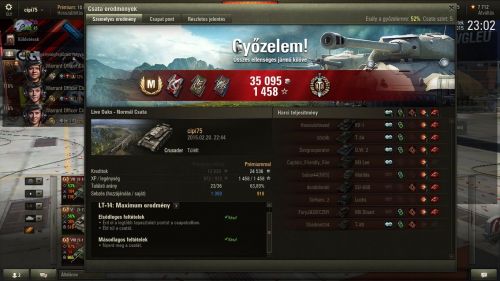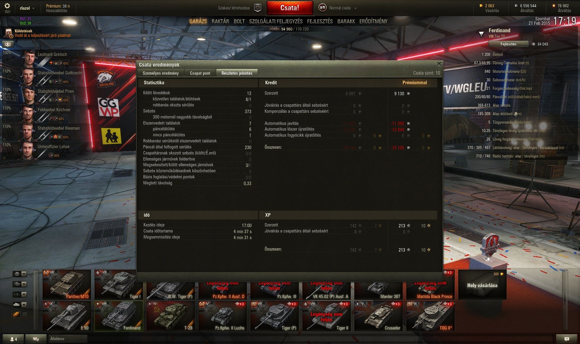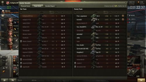 Meg egy replay-t elbsztam, mert meglett a heavy 15-ös is ST1-el, de berágtam és nem vártam meg a csata végét ezért minden eredmény elveszett. Szóval egy E100 egy E4, egy E75 meg mittudomén még mi segített a 10k össz sebzésben.