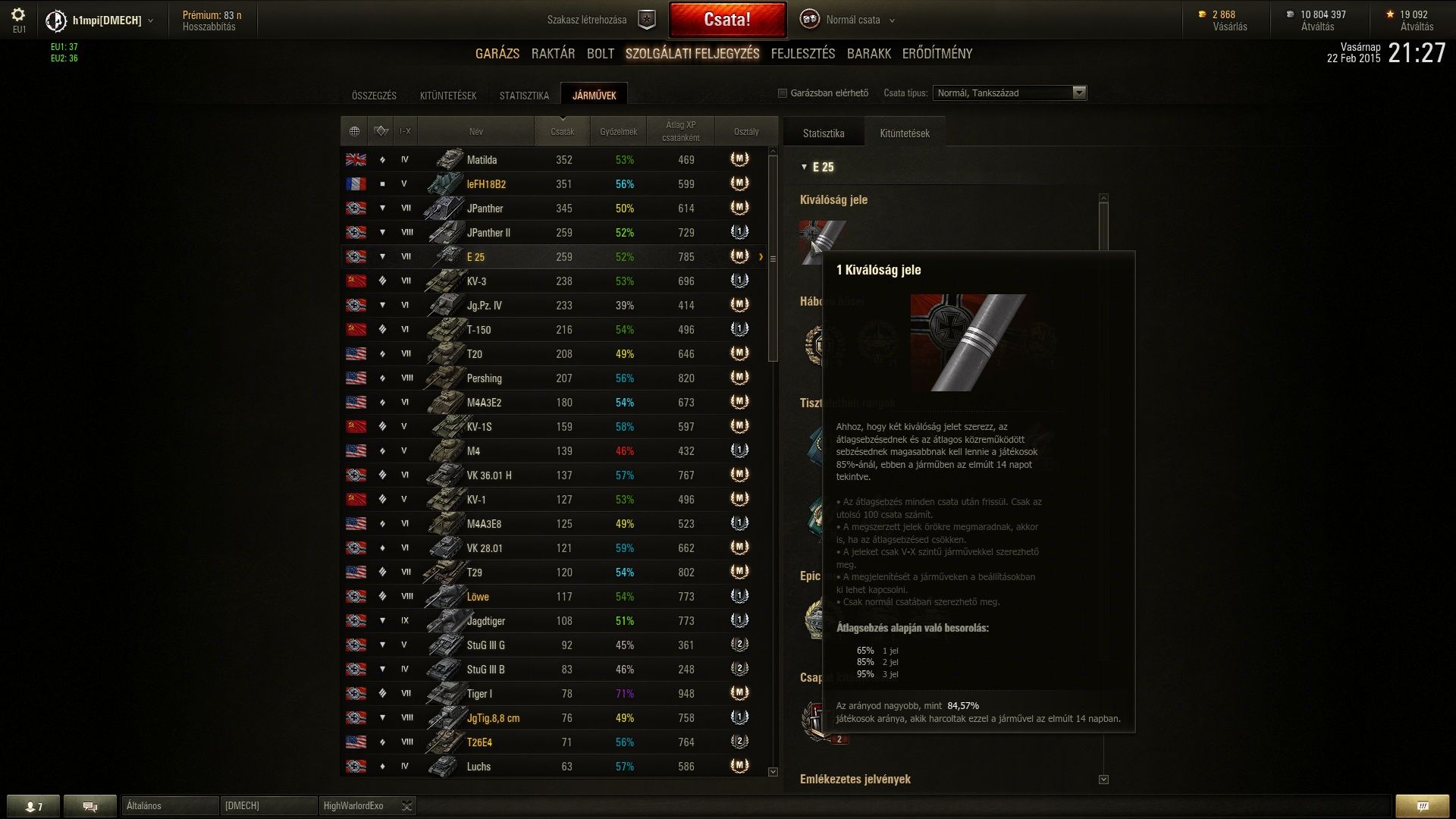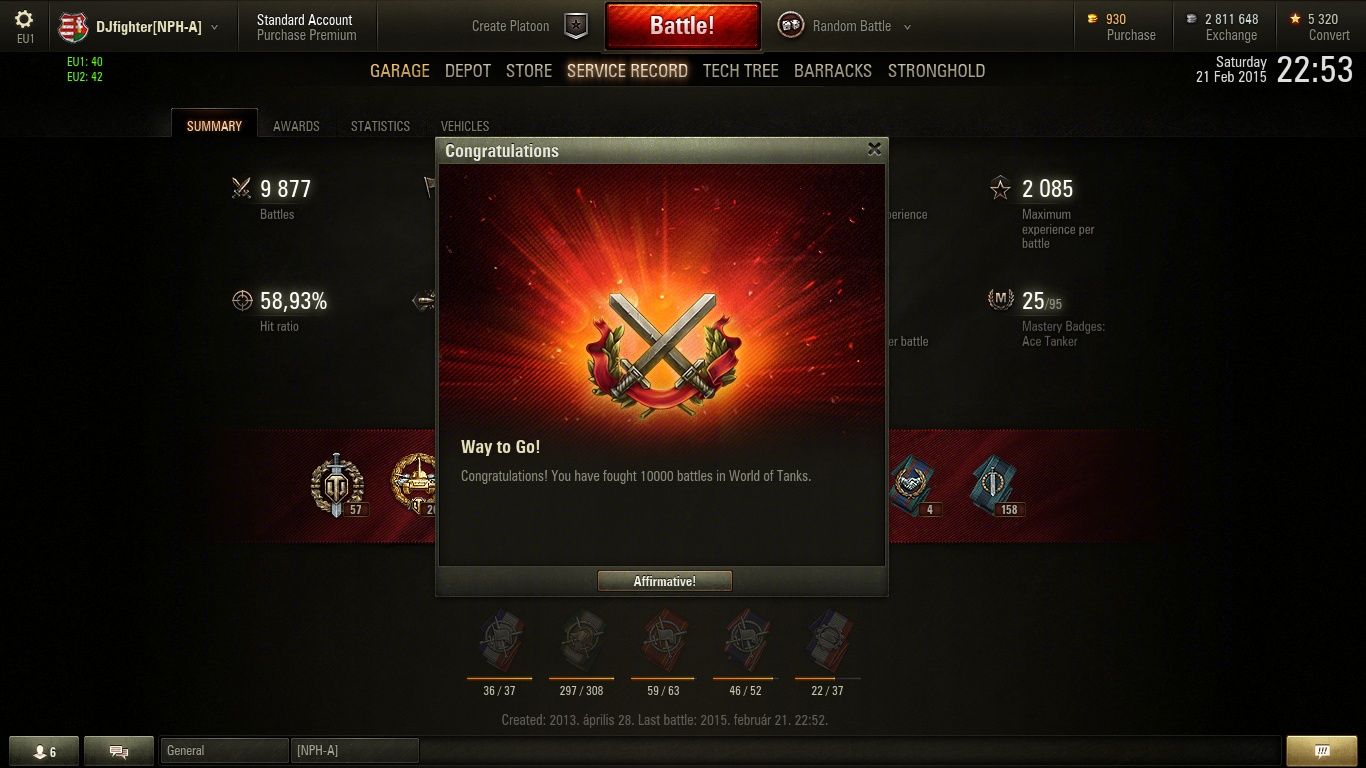 Azért elbeszélgetnék annak az anyukájával, aki miatt a prém artym használhatatlan lett. Az összes arty pontosabb lett, az enyém meg valami elképesztő módon pontatlan. A full összeszűkült eddig 100%-os lövések mennek a toronyóra minden irányában. Eddig simán láncon tudtam tartani egy VIII-as heavyt, most örülök, ha eltalálom... Komolyan legszívesebben írnék nekik, hogy vegyék vissza, mert ez így semmire nem jó kb...