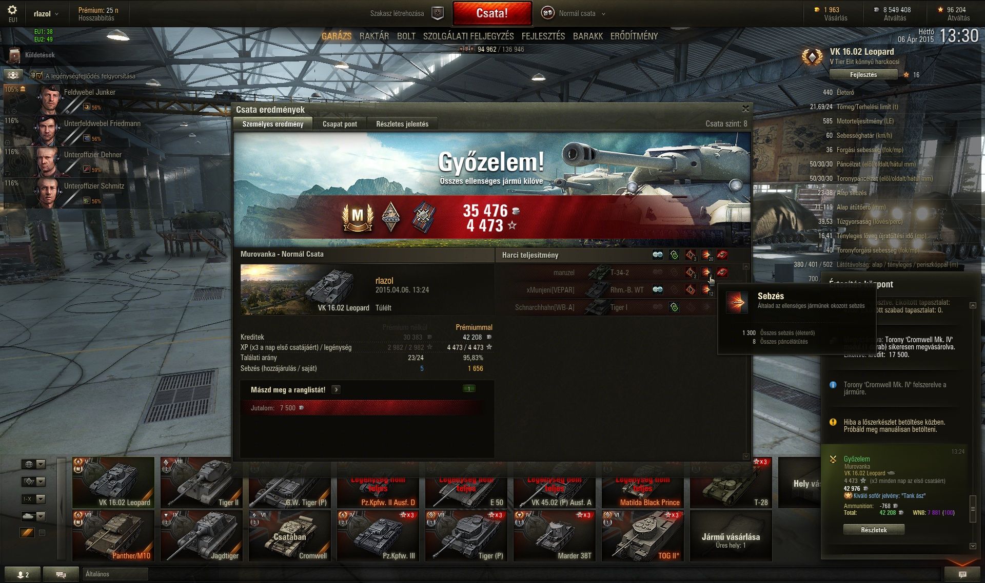 2. Ha nem hátrál, hanem ott marad, vagy hátrál, de nincs fedezéke, akkor simán belelövök újra, hiszen gyorsabban töltök és visszatolatok. Ő veszített 640hp-t és 390-et.Innentől bármit csinálok nyerek, ráadásul a játékosok 99%-a parázik (fogalmam sincs mitől, hiszen csak játék) ezért ha ezután csak kitolom a tank elejét és visszahúzom 75%-ban ellövik magukat a semmire, onnan megint én vagyok előnyben, mert lőhetek kettőt. Ekkor már tényleg szinte az összes elkezd tolatni én meg előre-hátra hintázok beforgatva neki, hiszen ha tolat, pontatlan, ha hintázok folyamatosan mozgatom a belőhető felületet és máris nagy esélyem van, hogy pattan, nem talál el és simán megölöm.