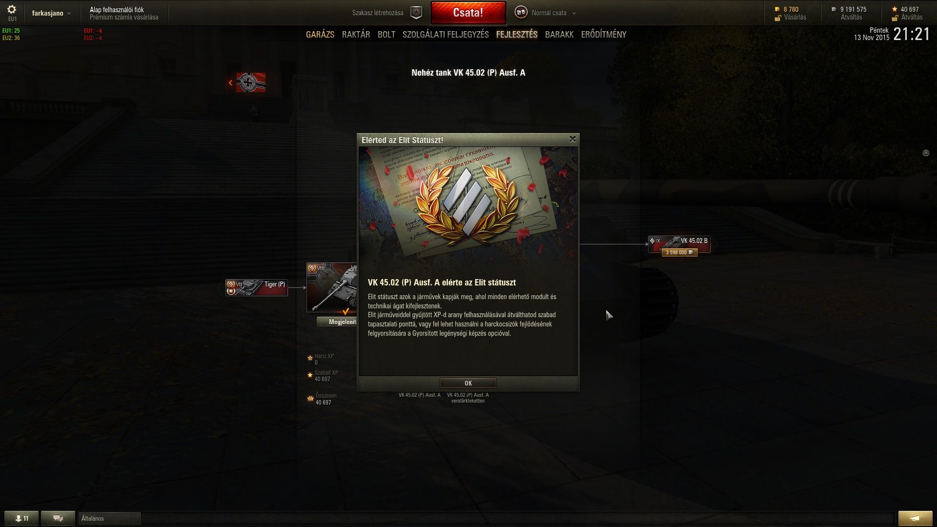 Mindenképpen, csak érjek már haza... :-D Lassan összeáll a "karácsonyi vásár" tanklistája, T49, Borsig, JPII, ST-I kifejlesztve, a nyolcas német arty is megvételre vár... Sajna még csak hét millánál tartok, nincs elég időm játszani, bár ez a hétvége szerintem most meg fogja dobni a kreditemet. :-)