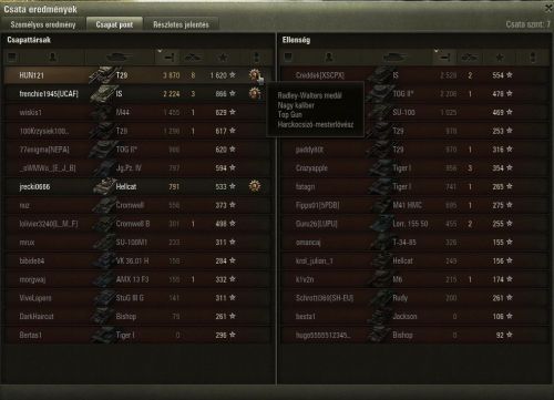 Izgalmas volt, mert vesztésre álltunk, de a végén sikerült megfordítani a csatát és az artynk még rendes is volt, mert meghagyta az utolsó killt nekem, hogy meg legyen a Top Gun és azzal együtt a Pascucci is.