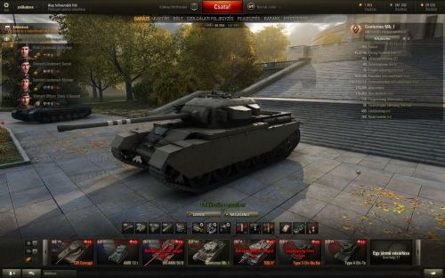 Jelenleg KV-85 , VK 36.01 (H) , T1 Heavy , KV-1 , JagdPanzer IV , Crusader és egy T-46 áll a garázsban.