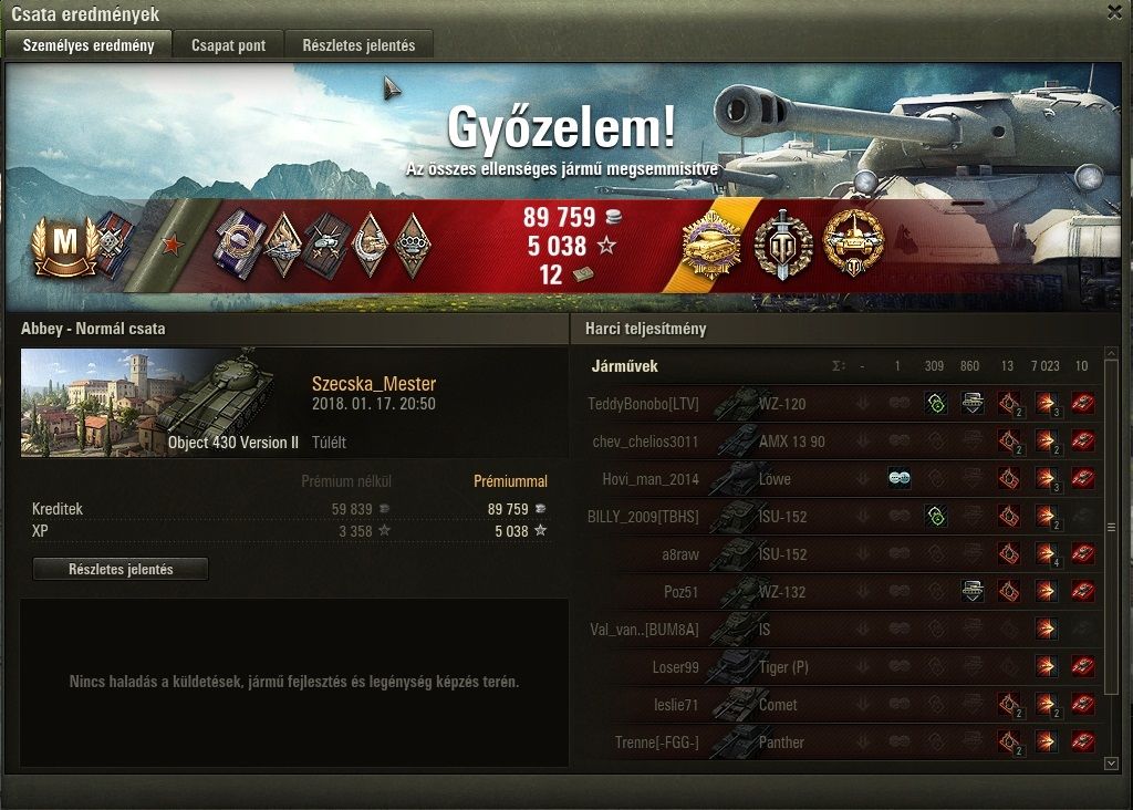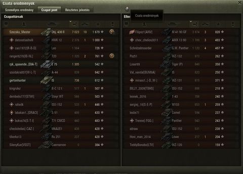 Mostanság nem jó játszani. Ezzel az új mm-mel nem tudom mi lett és van, T7 és T8 folyamat bottom. Ugyan minek van a Tier 10 mint fejlesztési fa csúcsa? Hogy agyoncsapkodja a kisebb tierűt? Játszanak egymással és csakis egymással, nem kell bohóckodni,hogy vajon merre kellene menni,hogy valami eredményt produkáljon az ember. Mert a winnyóc mellett az xp is a sebzésből jön (részben de nagyrészt), ergo marha felemelő grindelni így. Aki hülye, az meg elég goldot fog ellőni így is.
