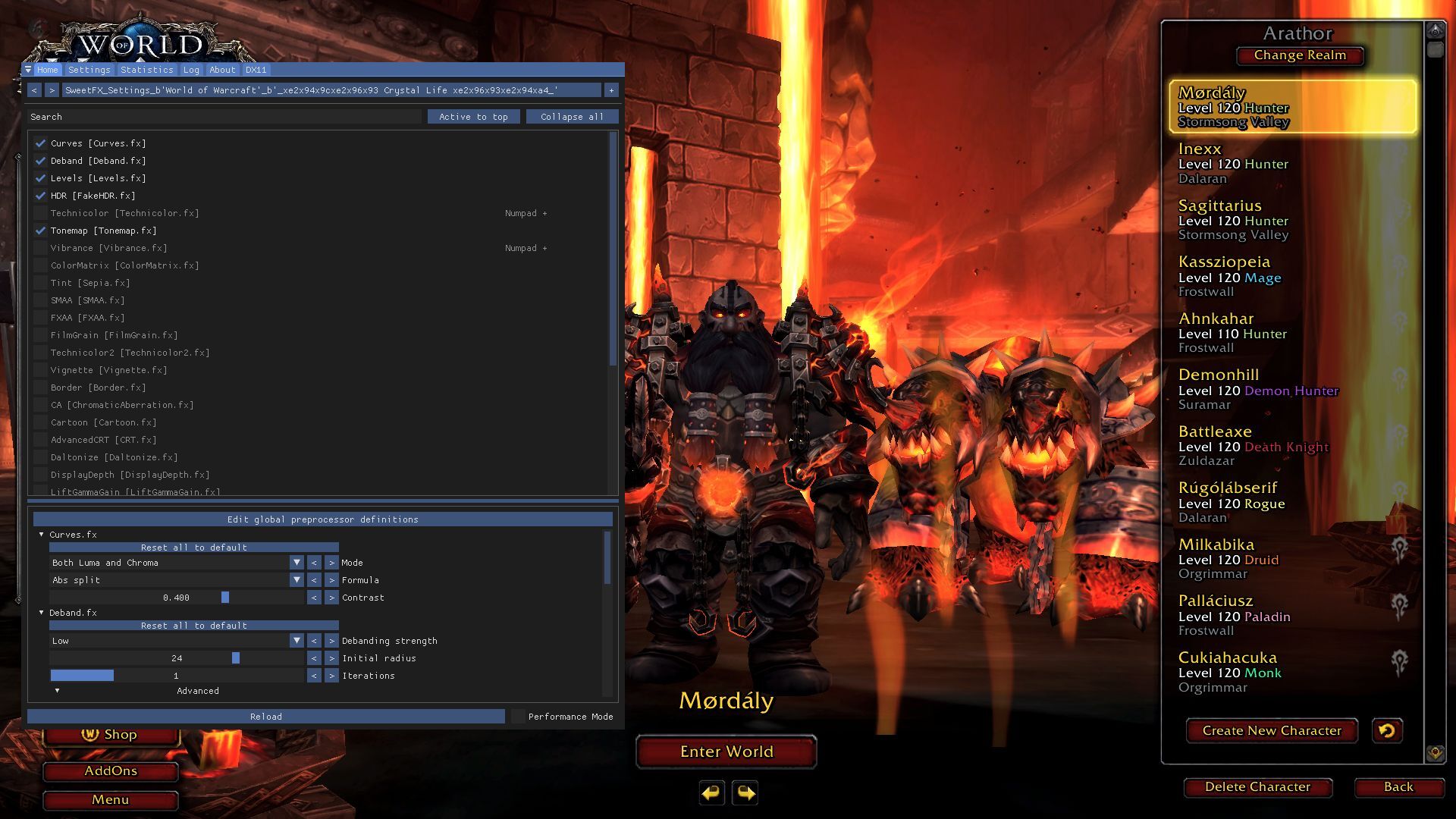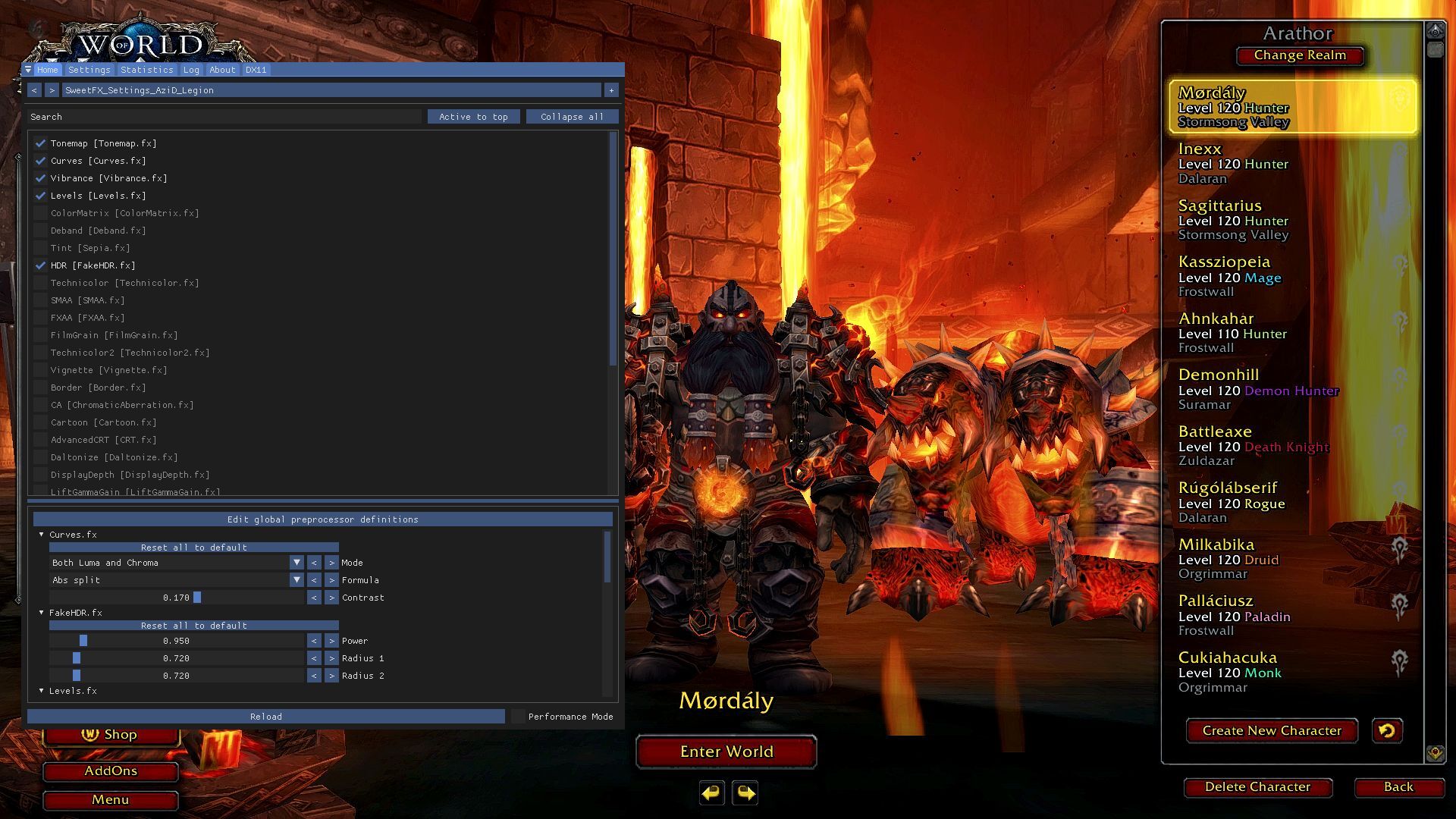 - az Azid Reality WoW Settings.txt ki van jelölve?.. abból nyeri a beállításokat.Nekem még a Legion-ös Azid tetszik legjobban, preseteknél van külön WoW : Legion, abban ami van, azt használom mai napig is.